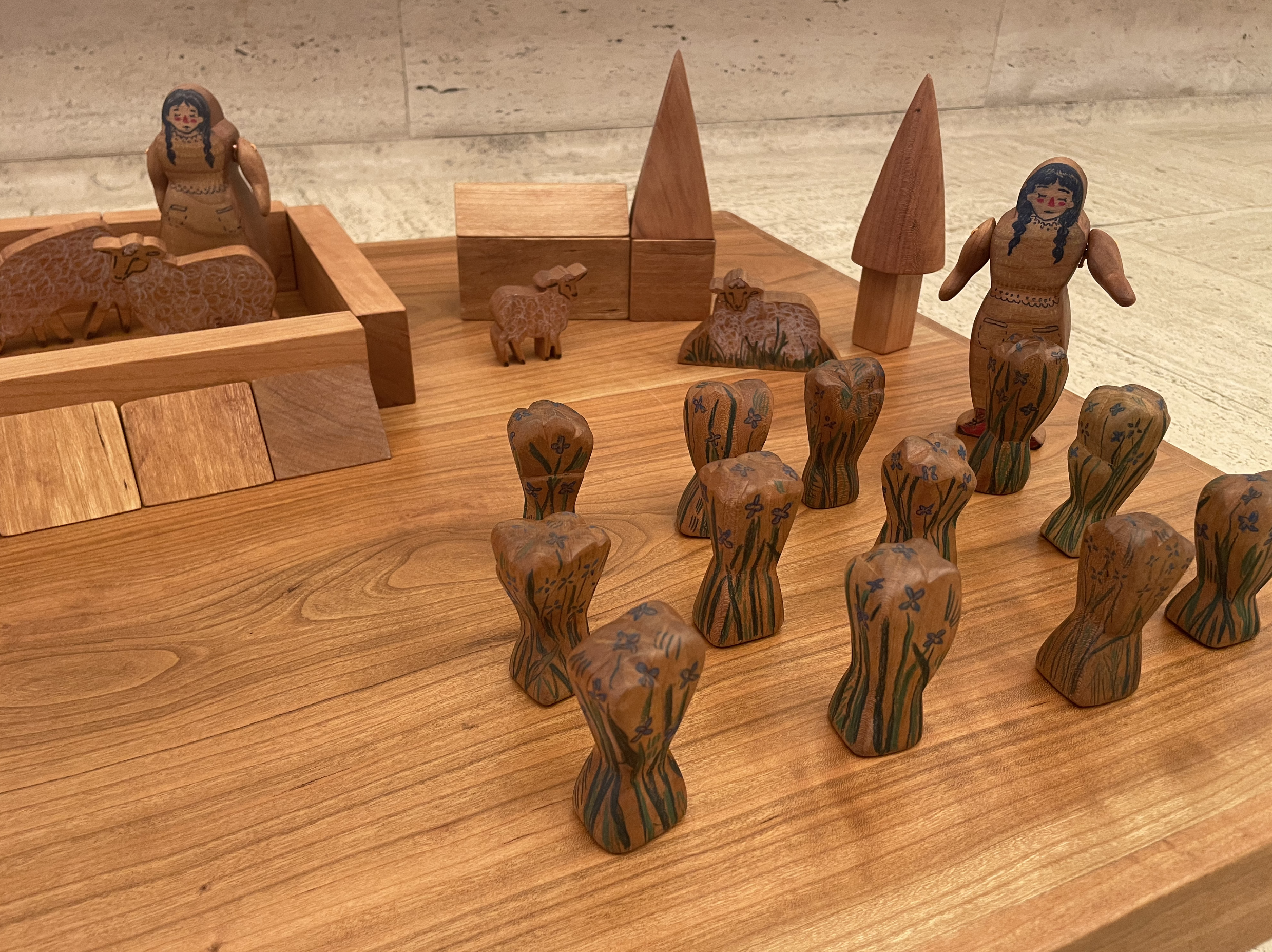 Heirloom quality educational cherry wood blocks and dolls.